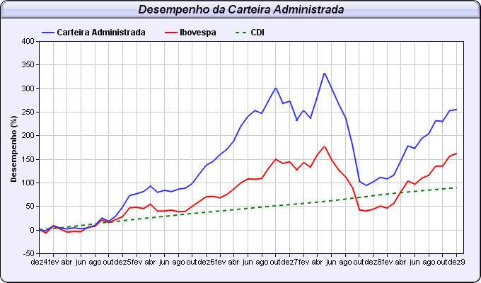 Nosso maior diferencial tem sido o desempenho comprovado de rentabilidade das carteiras que administramos no passado.